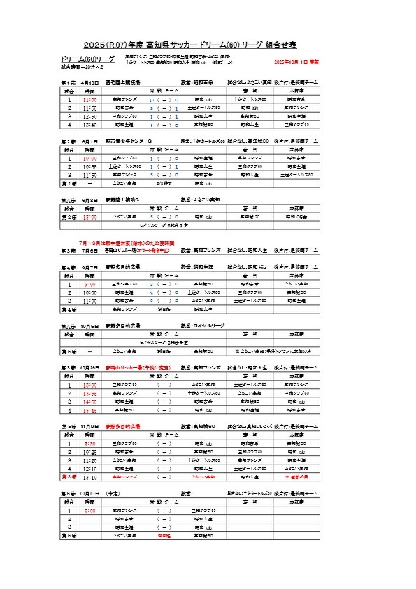 2025年ドリーム(60)リーグ日程表(10月1日更新)