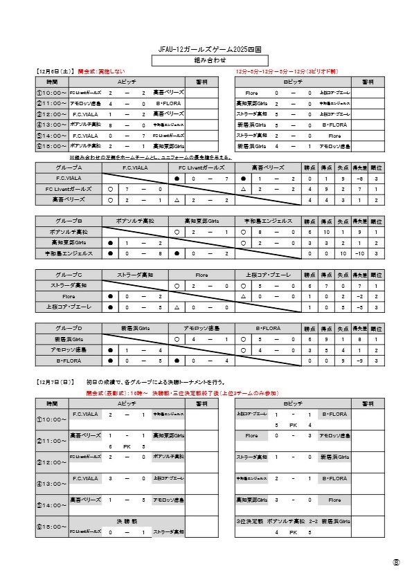 JFA U-12ガールズゲーム2025四国 高知県予選 要項