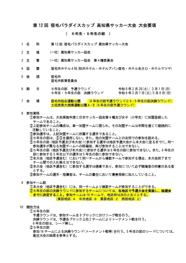 第12回 宿毛パラダイスカップ 高知県サッカー大会 要項