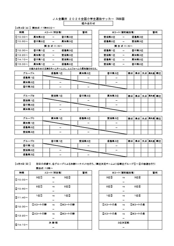 JA全農杯 2026全国小学生選抜サッカー IN四国 要項