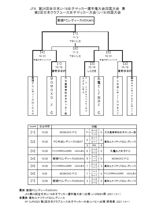 【大会結果】JFA第24回全日本U-18女子サッカー選手権大会 兼 第2回日本クラブユース女子サッカー大会(U-18)四国大会