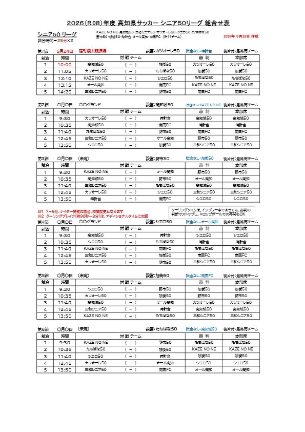 2026年シニア50リーグ日程表(3月25日更新)